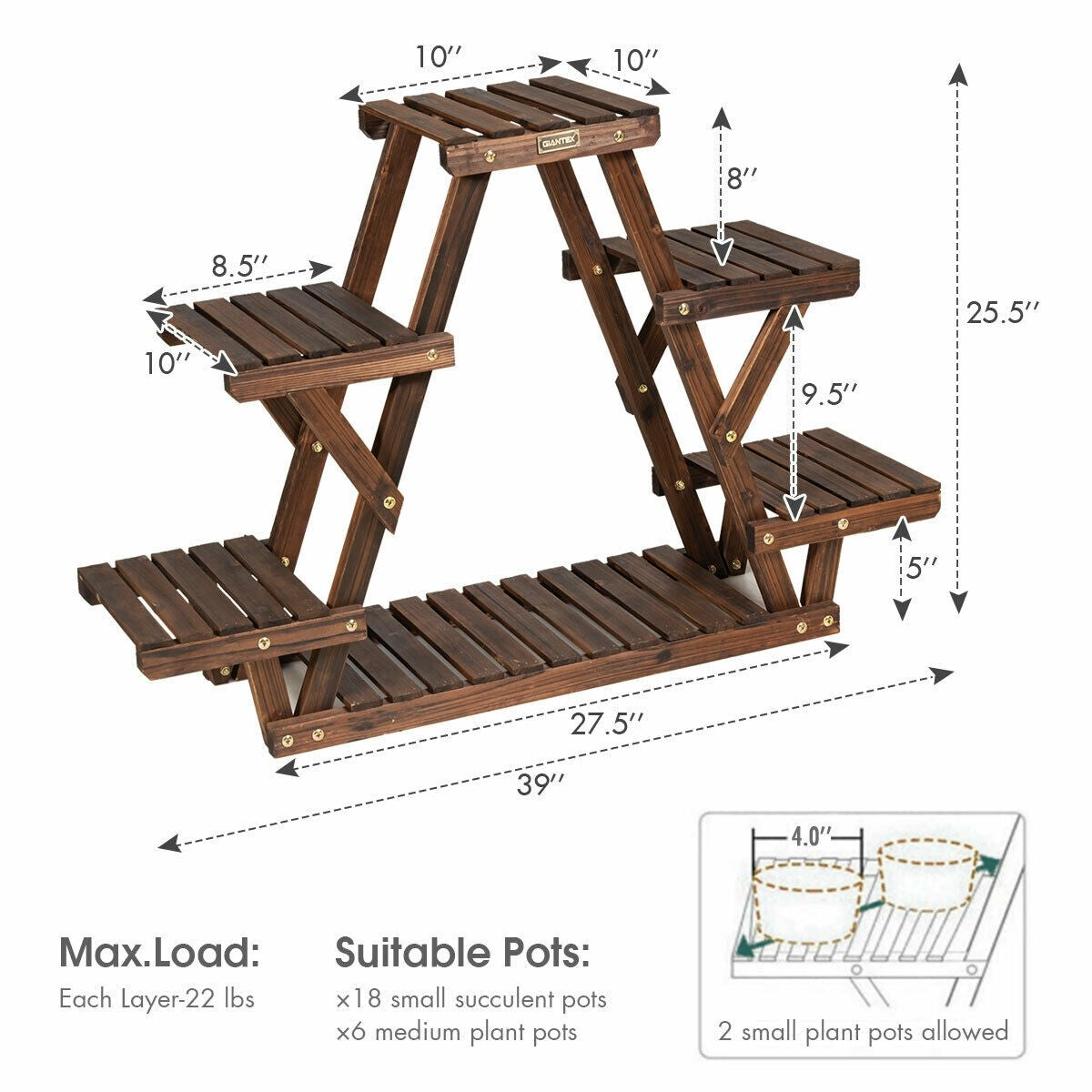 - Maximum weight capacity of 22lbs of each shelf to hold various plant pots